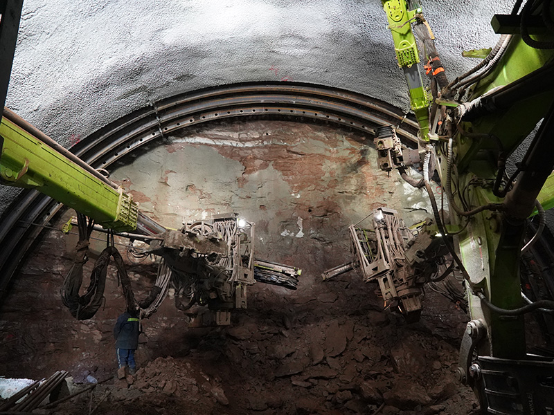 LH-150Y掘進支護一體機組是藍海智能針對隧道掌子面施工開發集掘進開挖、支護、噴漿、打錨桿作業等功能于一體的集成化施工,實現掌子面全工序作業設備。具備非爆掘進、鉆爆掘進、出渣、立架、打鎖腳和錨桿、注漿、噴漿等進行平行作業能力,能滿足鐵路單洞雙線隧道、高速隧道、市政隧道、鐵路小斷面隧道施工作業,一次掘進隧道斷面尺寸寬度14-16米,掘進高度7.8米以上,相比現在采用單工序循環作業方式,每班提升效率50%~60%。