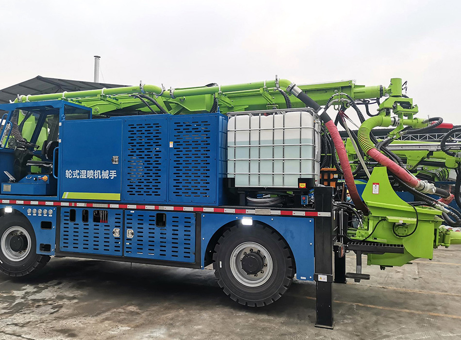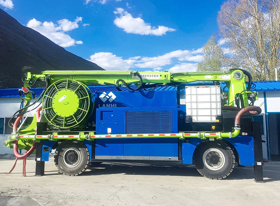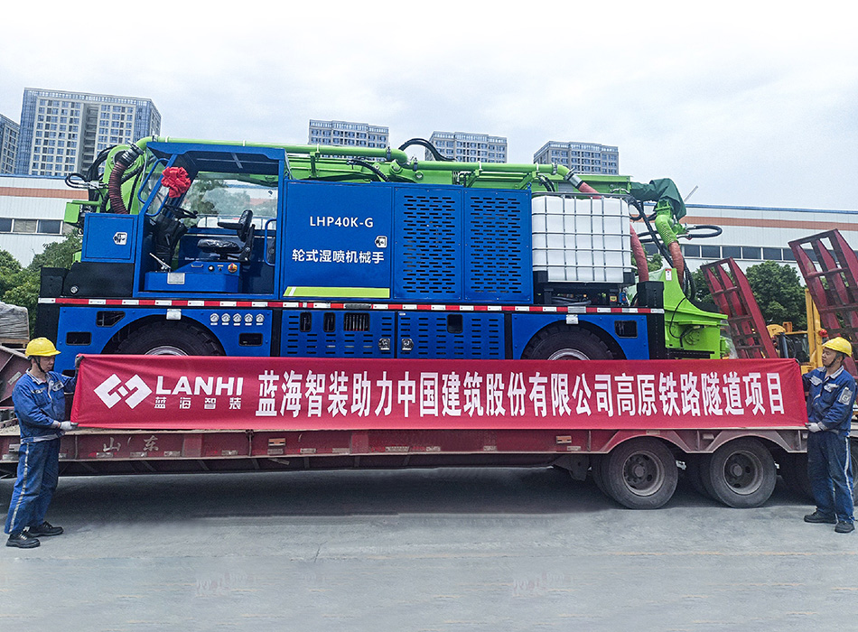 LHP40K-G輪式濕噴機械手是一款綜合國內隧道初支混凝土噴漿工藝及高海拔施工工況研發升級的一款 專用設備,最大噴射方量達到40m3/h,廣泛應用于隧道工程、水利工程、市政工程、道路橋梁工程等。 該設備具有噴射方量大、不易堵管、回彈低、性能穩定可靠等特點,既適用于全斷面,也適用于半斷面 和多階梯開挖。